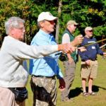 River*ence 2014 started on Friday, October 24,at Trip and Virginia Martin’s Alpaca farm on Big Creek, where Ken Bach-man (pictured, right) , certified casting instructor, and other helpful TU volunteers teach the vets rudimentary fly rod casting skills sufficient for the fishing they will be doing over the next three days. After learning to cast, vets get to ply their new skills on the Martins’ two trout ponds.